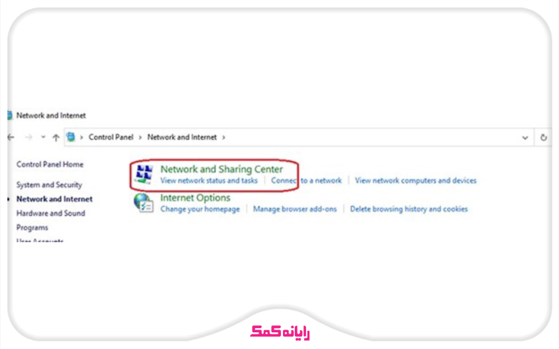🔰 در این قسمت لازم است گزینه Network and Sharing center را انتخاب کنید .
