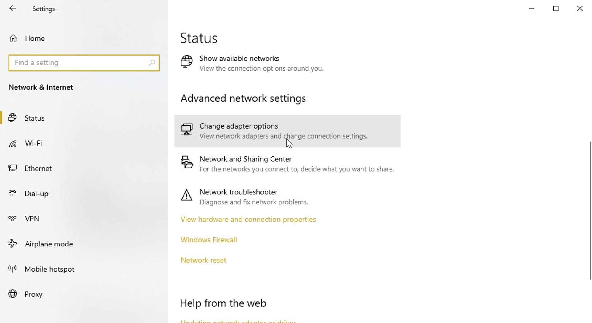 2. روی `Change adapter options` کلیک کنید.