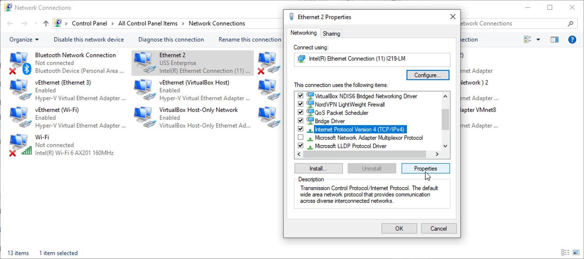4. گزینه `Internet Protocol Version 4 (TCP/IPv4)` را انتخاب و روی `Properties` کلیک کنید.