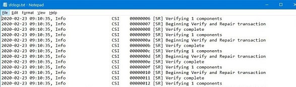 findstr /c:"[SR]" %windir%\logs\cbs\cbs.log >sfcdetails.txt