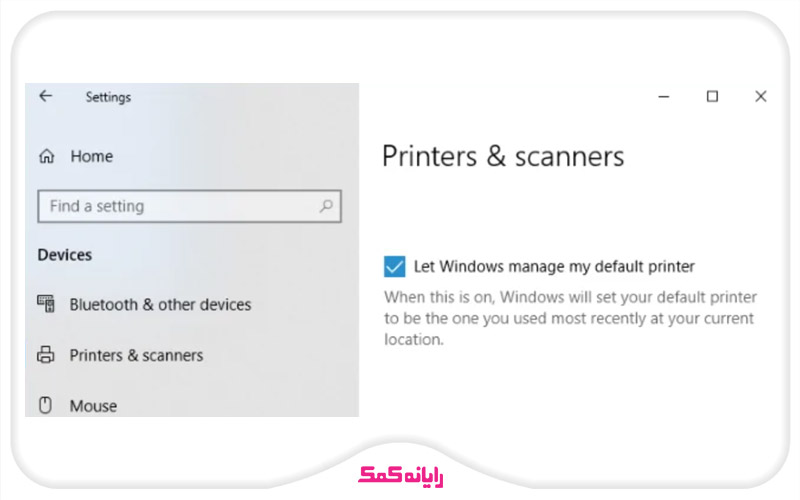 ⚠ نکته: در صورتی که چند پرینتر گوناگون به سیستم وصل باشد، این امکان وجود دارد که برای هر سند یا برنامه پرینتر پیش فرض متفاوتی را مشخص کنیم. در صورتی هم که تمایل داشتیم تا پرینتر پیش فرض بر اساس موقعیت مکانی تغییر یابد باید حتماً گزینه Let Windows manage my default printer را فعال کنیم.